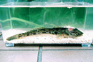 何しろ食い気が盛んだから、足許でも釣れる。 道具立ても凝ったりする必要はさらさら無く、 在り合わせのもので充分。それでもあれこれ こだわるのが心意気と言うものかも知れない。 夏の終り、台風の通過をきっかけにぱったり 釣れなくなる。台風を合図に次第に深場へと 落ちてゆくらしい。やがて秋も深まる頃には 泥底に巣穴を掘り始め、そこで冬に産卵の後、 一生を終える。 まれに年を越したものが見つかることがある。 いわゆるひね沙魚で、20cm近くあるけれど がりがりにやせ細り、鰭も皮膚も擦り切れて ぼろぼろ。元気も無く静かに水底に横たわり、 次の世代の成長を静かに見守っている |