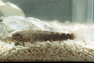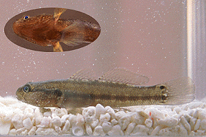 けれど真っ黒になっていたりすることも多く、 縞模様が判り難いことも珍しいことでは無い。 また、成長すると頭も平たくなってくるので、 なおさら同じ魚かどうか判り難くなってくる。 拾った空き缶の中に潜んでいたりすることが あるけれど、そんな時は空き缶の中を見ると 卵がびっしり産み付けられていることも多い。 まさに命がけで卵に寄り添っているのである。 赤帯縞沙魚と霜降縞沙魚の2種類が見られる。 胸鰭上部に遊離鰭条が1本あり、顎の下側に 斑点が無いことで霜降縞沙魚との区別が可能。 尻鰭に赤帯のあることがその名の由来なのに、 この赤帯がはっきりしないことも少なくない。 けれど、純淡水中には現れないとされている。 胸鰭上部に遊離鰭条が見られず、顎の下側に 白点があることで赤帯縞沙魚との区別が可能。 |