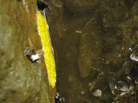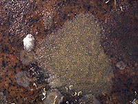 このところようやく梅雨らしい空模様が続くようになったと思ったら、 今日は朝から良い天気。梅雨の晴れ間が週末に来るとは何とも幸いで、 日頃の行いを天はそれなりに評価してくれたと言うことか…。ただし 干潮が10:53とちょっと早めなのが辛いところ。それでも夕べは 夜更かしをせず早く寝たので、9:30には勝島橋の袂へ到着できた。 鋼矢板の護岸は臑くらいの水深。疣螺の卵嚢はそれほど増えたように 感じられないけれど、疣螺そのものはずいぶんと増えたように見える。 裁ち上りをたも網で探ってゆくと、ぽつぽつ入るのは真沙魚ばっかり。 泥目の姿が思ったよりも少なく、鋼矢板の襞を1枚1枚探ってみても 一向に入らない。雨水渠までの間に入ったのがほんの数尾だなんて…。 そのまま雨水渠を横切り橋の直下へ出てみる。ぽつぽつ入る真沙魚に 魚少の姿がちらほら混じるようになる。ここでもやはり泥目は少ない。 けれど橋をくぐり抜けて北側へ出ると、こちらの排水溝の前にできた ごく浅い水溜りやそこからの流れに、泥目がうじゃうじゃ集っている。 何度かたも網で探っただけで、バケツの中はあっという間に形勢逆転。 魚少の卵はどうなったろうと前の大潮に見つけた石膏板を見に行くと、 板の下からちょろちょろと数尾の魚少が顔を覗かせているのが見える。 驚かさないようそっと板を起こしてみると、あらら〜卵が増えている! 1つ1つの塊の区別も付かないほどびっしり産みつけられている卵は どれも真新しく、以前に産みつけられていた卵は既に孵化したらしい。 ●勝島橋 泥 目 27尾 44〜68mm 40代6、50代15尾 真沙魚 22尾 27〜95mm 80代4、70代5尾 魚少 16尾 13〜98mm さらに小さいものも数尾 蚯蚓沙魚 2尾 40、43mm 足白沙魚 1尾 63mm 雛沙魚 1尾 34mm 潮も上がり始めた12:00頃に埠頭の南へ。来るのが少し遅かった ようで、鋼管どころか船台の棒杭も沈みかけている。急いでたも網を 曳き始めると、姫沙魚と微倫吾が2尾ずつ入った他は真沙魚ばっかり。 醤蝦も少なくなった。孫を連れて沙魚釣りに来ている夫婦のバケツを 覗くと、浅蜊や馬刀貝が入っていた。波打際には汐吹きも落ちている。 さらに潮が上がり膝くらいの水深になったところで、鋼矢板の護岸の 裁ち上りをたも網で探ってみる。入るのはやっぱり真沙魚ばっかり…。 けれど砂地で網を曳いた時よりも、入った真沙魚は大きいものが多い。 砂地のものより一回り以上大きくて、7cmを超えるものが少なくない。 大きく育ったものは、それなりに水深のある所で暮らすと言うことか。 その後、潮が届く寸前の排水溝の出口の水溜りを覗く。駆け上がりの 斜面の上部には微倫吾、下部には真沙魚と言う構図は変らないけれど、 あれほどびっしり並んでいた指長筋蝦はすっかり目に付かなくなった。 砂地で網を曳いたり護岸の裁ち上りを探っている分には減ったような 印象は受けないから、減ったのではなくて行動様式が変ったのだろう。 そんな水溜りをたも網で浚ってみると、真沙魚や微倫吾ならともかく、 泥目が最も多かったのはちょっと意外。数が多いと言うことではなく、 単に網に入り易いだけなのかも知れない。魚少も2尾だけ見つかった。 水中を漂っていた醤蝦はここでも減ってしまい、どこにも見当らない。 やがて流れ込む潮に乗って、洲走りの群れが我れ先に入り込んできた。 ●埠頭の南 真沙魚 17尾 33〜78mm 姫沙魚 2尾 47、48mm 微倫吾 2尾 47mm2尾 鋼矢板の護岸 真沙魚 21尾 60〜92mm 60代7、70代9、80代4尾 排水溝の出口の水溜り 泥 目 16尾 36〜69mm 50代7、60代6尾 真沙魚 6尾 62〜98mm 微倫吾 7尾 33〜56mm 魚少 2尾 50、62mm |