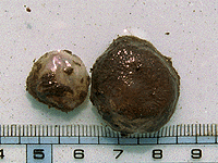 この3連休は全て大潮だと言うのに、台風4号の接近で初日の朝から 雨がぽしゃぽしゃ。どうしようかと迷ったけれど、今のところはまだ 土砂降りと言う程の雨でもないし、明日はさらに接近すると言うから、 今日のうちに探れるだけ探ってしまおうと、ビニールの雨合羽を着て 10:00頃に勝島橋へ。さすがに釣り人の姿はどこにも見当らない。 鋼矢板の護岸の裁ち上りを1枚1枚たも網で探ってゆく。ぽつぽつと 入る真沙魚に10cm近いものが見られるようになった。けれど数では 圧倒的に魚少、それも3cm足らずの小さなものばかりが目立って多い。 中には1cmそこそこのものもいて、網の目からぽろぽろと落ちてゆく。 孵化してから間もないものだろう。ヒネは3尾しか見つからなかった。 その一方で泥目がすっかり減ったな…と思っていたら、橋をくぐって 北側の排水溝の出口まで来ると、そこの水溜りにたくさん集っていた。 まさにうじゃうじゃと言う感じで、数回探っただけであっという間に バケツの中は泥目だらけ…。船の波に合せて網を曳くと微倫吾が入る。 雛沙魚は相変わらず雌が多いけれど、1尾だけ何となく顔がごつい…。 写真の提供を安請け合いしたのはいいけれど、あまりにも普通すぎて 毛房磯蟹や磯蟹を撮っていなかったので、ここで調達することにする。 けれど毛房磯蟹は幾らでもいるのに、今日に限って磯蟹が見当らない。 たまに鋏に毛の無いものがいても、いざ捕まえてみると雌の毛房磯蟹。 豆拳蟹や地中海緑蟹も撮り直したいけれど、やっぱり見つからない…。 まぁ、いざとなったら被写体の蟹は埠頭の南で調達することにしよう。 できれば被写体はしおじ磯で調達したもので揃えたいところだけれど、 しおじ磯でも見られる種と言うことで参考程度にはなるように思える。 蟹を探して護岸を見ているうちに、疣螺が増えていることに気が付く。 卵嚢も増えたように感じられる。卵に寄り添う鶏冠銀宝も見つかった。 ●勝島橋 魚少 22尾 20〜72mm 20代12、30代7尾 泥 目 16尾 47〜67mm 50代6、60代7尾 真沙魚 12尾 32〜91mm 微倫吾 9尾 37〜53mm 40代6尾 雛沙魚 6尾 28〜38mm 30代5尾 蚯蚓沙魚 1尾 47mm 雨は次第に強くなってくる。12:00頃になったら四阿で一服する。 今ここで帰れば風林火山の再放送に間に合うな…なんて考えが脳裏を 過ったりもしたけれど、わざわざ雨の中をここまで出て来たのだから、 ここはもう一踏ん張り。再び合羽を着てしおじ磯へ降り、石を起こす。 天候のせいか思ったよりも潮が上がるのが早く、土留めに迫ってくる。 こんな天気でも蚯蚓沙魚にはあまり変った様子は無い。けれど泥目は 何処へ行ったのか、若魚とヒネが1尾ずつ見つかっただけ。今までは 見つからなかったヒネがこんな日に限って見つかるのも何だかなぁ…。 しおじ磯では久しぶりの鉄砲蝦が1匹。頻りに腹を気にしているので 良く見たら卵を抱えている。指長筋蝦の卵よりもずっと小粒で黄色い。 ●しおじ磯 蚯蚓沙魚 12尾 38〜72mm 40代9、30、50、70代各1尾 泥 目 2尾 68mm、113mm |