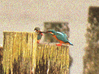 中央海浜公園へ向う前に一服しようと思って勝島運河の堤に上がると、 船着き場の足許に鼻先の白い黒い姿。おやっと思ったらこれが大鷭で、 しかも2羽いる。大鷭を間近に見るのは初めてなので、水際へ降りて じっくり眺める。2羽とも盛んに潜水を繰り返し、青海苔をくわえて 浮かび上がる。それに疲れると船底の突起に乗って休んだりしている。 大鷭を眺めているうちに、何処からともなく星羽白まで近付いてきた。 いつも背中に首を埋めて寝ている姿ばかり見ているので、真昼間から 泳いでいる星羽白は目新しく映る。船着場の足場をつついているのは、 餌を探しているのだろうか。空腹に寝つけなかったのかも知れないな。 2月とは思えない眩しいほどの陽射しに赤い首が一際鮮やかに見える。 船溜りを少し離れて水面が少し開けた所に、金黒羽白が浮かんでいる。 星羽白でさえ泳ぎ回っていると言うのに、こちらはみんな首を背中に 埋めて寝ている。ふと見上げると鳶が2羽。次第に水面すれすれまで 降りてきたけれど、百合鴎の群れに迎撃されて再び上空へ舞い上がる。 何回か同じことを繰り返してから、やがて南の方へ飛び去っていった。 昼御飯を食べずに出て来たので、鮫洲まで行きラーメンを食べてから 干潟保全区へ向う。けれど閑古鳥が鳴いているのですぐに引き返して 自然観察路へ行ってみる。相変らず嘴太烏が大騒ぎで、聞けば今日は 大鷹が出たとか。池の水面には尾長鴨に軽鴨そして小鴨。奥の方には 鴛鴦の姿も見られる。一瞬ではあるけれど、翡翠も姿を見せてくれた。 16:00になって自然観察路が閉まる時間になったら干潟保全区へ。 けれど相変らず最も多いのは閑古鳥。水面に鳰と羽白鳰が、波打際に 白鶺鴒と磯鴫が見られるくらい。夕やけ小やけが流れるまで粘っても、 遂に変化は無かった。潮はもうすぐ下げ止まり。しおじ磯の土留めが 現れるほど引かないけれど、波打際に降りて餌用の牡蛎を拾って帰る。 |