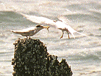 午前中に夕べの結果を確認。埠頭の南の沙魚はたった4尾しかいない。 洲走りを含めても10尾に満たないとは寂しい限り。夕やけなぎさの 魚少は大きさにばらつきが目立つ。1年も経たないうちにこれだけの 差が付くとは思えず、魚少の寿命は1年以上あるのではないかと思う。 干出部の蚯蚓沙魚と泥目は、採集方法が違うので計数対象からは除外。 ●埠頭の南 水温13℃ 姫沙魚 3尾 37、57、58mm 足白沙魚 1尾 38mm 洲走り 3尾 30mm2尾、33mm1尾 ●夕やけなぎさ 水温13℃弱 魚少 11尾 27〜83mm 大きさバラバラ…。 微倫吾 2尾 65mm2尾 足白沙魚 1尾 55mm 雛沙魚 1尾 30mm 洲走り 2尾 30mmと31mm ※参考…夕やけなぎさの干出部 蚯蚓沙魚 泥目 上記2種の産卵を確認 風林火山の再放送が終ったら、15:00頃になって中央海浜公園へ。 取り敢えず夕やけなぎさで確認の終った魚少や微倫吾を放流してから、 ベンチに腰掛けて一服。沖の方を見渡すとたくさんの鈴鴨や尾長鴨が 浮かんでいるけれど、広くばらけているので群れと言う感じがしない。 満潮が近いので安心しているのか、岸近くまで寄って来るものもいる。 夕やけなぎさを後に干潟保全区へ行ってみると、お立ち台の石積みに やって来るのは白鶺鴒と磯鴫くらいのもの。棒杭の上には軽鴨と川鵜、 そして蒼鷺が1羽。沈みかけた石積みの中洲に集まる尾長鴨や緋鳥鴨。 陸葦鴨も紛れ込んでいる。水面には鳰と羽白鳰。大きな鯔をくわえた 鳰が悪戦苦闘している。鳰が丸呑みするにはちと大きすぎやしないか? |