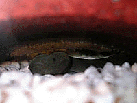 昨日は寒風に晒されたせいか、眼が醒めても起きるのが非常につらい。 昼近くなってようやく起き出してみると、天気は好いし風も無いのに 屋上のバケツには氷が張っている。春一番も吹いた後で何を今さら…。 昼食の後、橋の袂で見つけた今年初めての泥目の稚魚の大きさを測る。 今まで現地で測っていたのに、昨日は物差を持って行くの忘れてた…。 ●泥目 最小:7mm 最大:13mm ●微倫吾 最小:12mm 最大:13mm 昨年も初めて現れたものは7〜8mmだった。石の下に産みつけられた 卵の大きさからしても、孵化直後の泥目の大きさは5mmくらいだろう。 微倫吾の稚魚も混じっていると言うことは、言うまでも無く微倫吾の 産卵も始まっていると言うこと。浮鮴の稚魚もそろそろ現れる頃かな。 そう言えば未だに真子鰈の子を見ていないけれど、どうなんだろう…。 ついでに一緒に見つかった3cmくらいの沙魚をケースに入れて眺める。 どうせ足白沙魚だろう…と思っていたら、こいつが安倍沙魚みたいに 鼻先が丸く突き出ている。あれっと思ってルーペを取り出して見ると、 口許が片口鰯のようになっている。ってことは、こいつは真砂沙魚か! 何処かにいるんだろうとは思っていたけれど、やっぱりいたんだなぁ。 さて15:30頃になって中央海浜公園へ。まず干潟保全区を覗くと 水面には鳰と羽白鳰がそれぞれ4羽。軽鴨の姿もちらほらと見られる。 夕やけなぎさ寄りには鈴鴨の群れも来ている。奥の方の棒杭の上には 川鵜が陣取り、背黒鴎も1羽。石積みの中洲の向こう側に蒼鷺が1羽。 けれどお立ち台の石積みまで来るのは、相変らず白鶺鴒と磯鴫ばかり。 16:00を過ぎて土留めが干出したところでしおじ磯へ。昨日ほど 潮が大きく引かないので探す範囲は限られたもの。泥目も蚯蚓沙魚も 新しい卵は見つからなかった。それでも産卵前らしい蚯蚓沙魚が1尾。 水際で石を起こしていると、遊びに来ていた家族連れが興味深そうに 声をかけてくる。土留めまで案内し、泥目の卵を見せたら驚いていた。 天気は悪くないし風も吹いていないけれど、寒いのは昨日と変らない。 やがて家族連れが帰る頃になると陽も傾き始め、人の数も減ってくる。 潮に濡れた指先がかじかんで痛み始めたので、下げ止まり前には撤収。 夕食後、夕やけなぎさで見つけた泥目や蚯蚓沙魚の産卵床とするため、 素焼きの植木鉢のかけらを水槽に沈める。気に入ってくれると良いな。 |