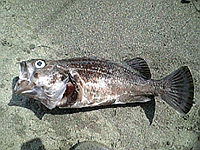 昨日とは一変し、快晴で風も無く、暖かい。12:30にしおじ磯へ。 棒杭の辺りで籠網を使ってみたけれど、入ったのは微倫吾が1尾だけ。 そりゃそうだ。ウェイクボードの連中が往ったり来たりを繰り返して 網が落ち着かない。30分どころか10分も沈めていられないのでは、 話にならない。おまけに拡声器は騒々しいし、本当に迷惑だよなぁ…。 ●しおじ磯 16.5℃ 2.2% 微倫吾 1尾 57mm |
