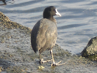 13:00過ぎになぎさの森の観察舎へ顔を出してみると、庭の梅の 蕾がもう綻び始めている。年が明けてからと言うもの暖かい日が多く、 この春は早めにやって来るのかも知れない。水温も下がらないしなぁ。 一服したところでしおじ磯まで降りてみる。雨水升の出口が間も無く 水中に没しようとしている。ぱっと見では玉黍しか見当らないけれど、 手近な石を起せばその裏側に、ちらほらと付いている石撒貝。けれど 1cmに満たない小さなものばかり。大きな岩に付いた3匹の霰玉黍は、 相変らず動いた形跡が見られない。何時までじっとしているんだろう。 さて、日も沈みかけた頃に鮫洲橋を渡る。水面を見降ろすと堤の際に、 青海苔でも漁っているのか大鷭の群れ。数えてみると14羽。ほんと 大鷭が増えたなぁ…。けれど数は増えたものの臆病なのは相変わらず。 橋の上で立ち止まっただけなのに、そそくさと沖の方へ逃げてしまう。 ![]() |