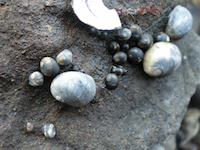 良く晴れて寒さもそれほど厳しくない。10:00過ぎに軽鴨が並ぶ みどりが浜で一服してから、10:30に東海埠頭公園まで来てみる。 何はともあれ、先ずは南側の鋼矢板の護岸を覗いてみる。高潮線より 上の方に、相変らず霰玉黍がぽつぽつと付いている。けれど潮がまだ 下がっていないので、護岸の石積みから遠巻きに眺めるだけで精一杯。 もどかしく思っていたら、目の前の石の窪みにすっぽりと嵌っている 霰玉黍が目に着いた。今まで鋼矢板の護岸でしか見られなかったのに、 数が増えたのか、鋼矢板の護岸から離れ、勢力を拡大し始めたらしい。 ![]() 潮が引くまで首都高の下の石積みで丸鶉玉黍を探そうと思ったけれど、 それにしてももう少し潮が引いて欲しいところ。じっと待っていても 退屈なので、埠頭の南まで往復して時間を潰す。12:00を回って 再び東海埠頭公園まで戻って来たら、先ずは裁ち上りまで潮の引いた 鋼矢板の護岸を覗いてみる。改めて見る霰玉黍は数もさることながら、 一段と大きなものが増えたような感じ。1cm近いものも見受けられる。 その後は丸鶉玉黍を見つけようと、石積みの護岸で往ったり来たりを 繰り返す。けれど目に入るのはありきたりの玉黍ばかり。丸鶉玉黍は 見つからなかった。2個体めが見つかるのは何時のことになるやら…。 |