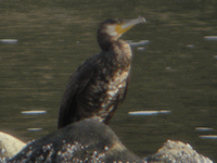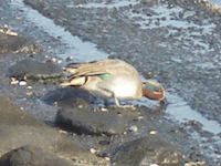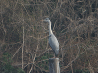 先日の石積みの中洲にいた鵜は川鵜なのか海鵜なのか。画像を図鑑と いくら見比べても、うーん、川鵜のようにも海鵜のようにも思える…。 画像だけでは埒が明きそうにないので、14:00過ぎにしおじ磯へ。 けれど今日は問題の鵜が来ていないのか見当らない。石積みの中洲も その周りの棒杭も、とまっているのは在り来たりな川鵜と蒼鷺ばかり。 せっかく今日も重い思いをしながらデジスコ一式を持って来たのに…。 せめて他に何か面白いものはいないかと水面を見渡しても、羽白鳰が 浮かんでいるくらい。それも焦点を合せているうちにすぐ水の中へと 潜ってしまうから、なかなかシャッターを切るに至らない。石積みの お立ち台の上で軽鴨が休んでいるけれど、デジスコでは鵤千鳥ですら 画面一杯になってしまう距離。軽鴨では体の半分しか画面に入らない。 電池はまだ残っているけれど、撮りたいものがいなくては仕方が無い。 |