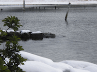 節分の時点で4月上旬並みの暖かさだったのに、それも束の間のこと、 昨日は20年ぶりの大雪となった。今朝になって晴れてはきたものの、 筋状に並んだ綿雲が何本も残り、冷たい北風がそよそよと吹いている。 09:30過ぎにしおじ磯の南端から干潟保全区を覗く。分厚く雪を 冠ったお立ち台の石積みの先端に鵤千鳥が2羽。奥の砂地がすっかり 雪に覆われてしまい、行き場を失ったらしい。そのすぐ先の水面には 羽白鳰が2羽。その向うには鈴鴨の群れが浮かんでいる。棒杭の上に とまったままの川鵜と蒼鷺。手前の石積みに1羽の磯鴫がやって来た。 ![]() 1時間ほど経ったところで夕やけなぎさへ行ってみる。踏み跡の無い まっさらの雪の感触を楽しみながら汀線まで降りてゆく。雨と異なり 雪解け水の影響は、出るまでに時間がかかるのだろう、水温を測ると 13℃もあり、それほど低くない。塩分も2.8%で、寧ろ高いと思える。 しおじ磯まで戻り水温と塩分を測る。塩分は夕やけなぎさと同じ2.8%。 けれど水温は3℃も高い16℃。雪の後でなくとも水温が13℃もあれば 冬場にしては高いと思えるのに、雪の降った後で16℃もあるのだから、 この冬の水温は異様に感じられる。この先どんな影響が出て来るかな。 さて、雨水升の出口の脇の大きな石の表面に付いている3匹の霰玉黍。 一向に動く気配を見せなかったけれど、さすがにこの雪では何処かへ 隠れたろう…と思ったら、豈図らんや3匹とも全く動いていなかった。 だったら他の面々はどうなんだろうと、松の石垣の下まで行ってみる。 高潮線に近い石を見れば、積もった雪の傍らで微動だにしない霰玉黍。 さらに下の石の裏の石撒貝にまで雪は迫っている。玉黍だけが水中で のそのそと石の表面を這い回っている。みんな意外と平気なんだなぁ。 昼も近くなったところで、しおじ磯の南端まで戻り干潟保全区を覗く。 何時の間に羽白鳰と入れ替ったのか、お立ち台の石積みのすぐ向うの 水面に鳰が1羽。石積みの中洲の手前に鈴鴨の群れ。鳰と入れ替った 羽白鳰は2羽とも夕やけなぎさ寄りの水面まで離れて、頻りに潜水を 繰り返している。居場所が見つかったのか、鵤千鳥はもう見当らない。 ●夕やけなぎさ 13℃ 2.8%弱 ●しおじ磯 16℃ 2.8%弱 |