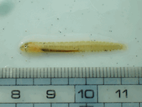 正午を過ぎて12:30に夕やけなぎさへ。風も無く良く晴れている。 汀線は棒杭の手前5mほど。水温は季節の変り目の一つの目安である 15℃を超えて16℃。泥が巻き上げられて水が濁り、水底の見通しが 全く効かないのは、つい先ほどまで群れていた鈴鴨の仕業だろうか…。 砂地とガレ場との境目の辺りから立ち込んで、水底を網で曳いてみる。 先ず網に入ったのは、3cmほどのにょろにょろ動く姿…また銀宝かぁ。 次いで網に入ったのは微倫吾の成魚。体色は幾らか褪せ気味だけれど、 腹がぽってりと膨れて、まだ産卵前のように見える。もう稚魚の姿が ちらほらと目に着くようになっているんだけれど…機を逃したのかな。 その足でガレ場まで来ると、雛沙魚が1尾。この冬は水温がそれほど 下がらなかったから、この夏には数を盛り返してくれるかも知れない。 ![]() 一先ず水から上がり、干出したガレ場で汀線の上から石を起して行く。 蚯蚓沙魚の卵が2ヶ所。どちらもまだ眼すら現れていない。さらには 腹の膨れた♀が1尾。まだ新しい卵に腹の膨れた♀かぁ…蚯蚓沙魚の 産卵はもう終盤なんだけれどなぁ…。今暫くは続きそうな感じがする。 石を起しながら少しずつ汀線から離れて行く。今度は卵を守っている 泥目が1尾。こちらの卵もまだ眼が現れていない。どちらも抱卵した 微倫吾に蚯蚓沙魚、まだ眼も現れていない蚯蚓沙魚の卵に泥目の卵…、 どれもこれも産卵期が遅れたか長引いているような気がしてならない。 潮が上がり始めたのを見計らい北寄りの砂地へ戻り、水底を網で曳く。 2cm足らずの小さな姿がわさわさ、網の目を抜けて次々と落ちて行く。 網で掬わずとも、其処彼処に漂っている姿が見える。言うまでも無く 微倫吾の子。数は兎も角、この時期にしてはまだ小さいように思われ、 やっぱり微倫吾の産卵は遅れていたのでは…と言う気がしなくもない。 一通り探り終えたところで、一服しながらぷらぷらと砂地を歩き回る。 気の早い米搗蟹が、穴の周りに砂団子を並べて縄張りを主張している。 ●夕やけなぎさ 16℃ 2.4% 泥 目 1尾 卵有り未計測 蚯蚓沙魚 3尾 ♀67mm1尾,卵有り未計測2尾 微倫吾ad 1尾 63mm 微倫吾yg 6尾 11〜16mm 安倍沙魚 1尾 30mm 雛沙魚 1尾 20mm 銀 宝 1尾 35mm |